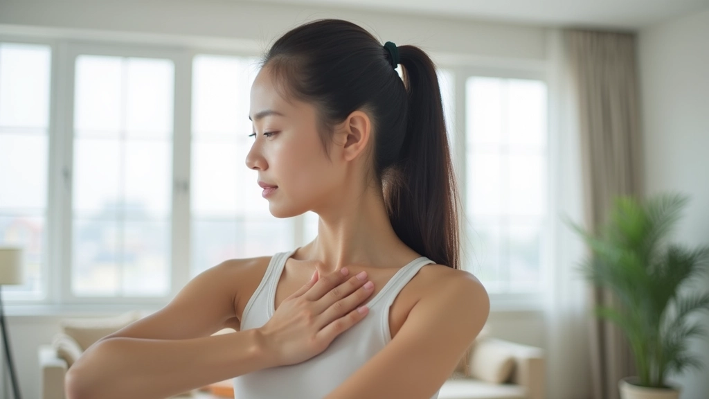 - 목 스트레칭: 고개를 좌우로 천천히 돌리거나 기울여 목 근육을 부드럽게 늘려준다.